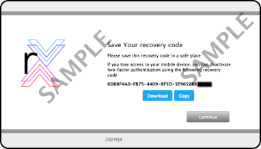 If you lose access to your mobile device, you can deactivate two-factor authentication using the following recovery code